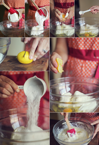 Meanwhile, when crust is baking, cream together all of the ingredients, (except for the strawberry jam and blueberries), with a hand held mixer until smooth.